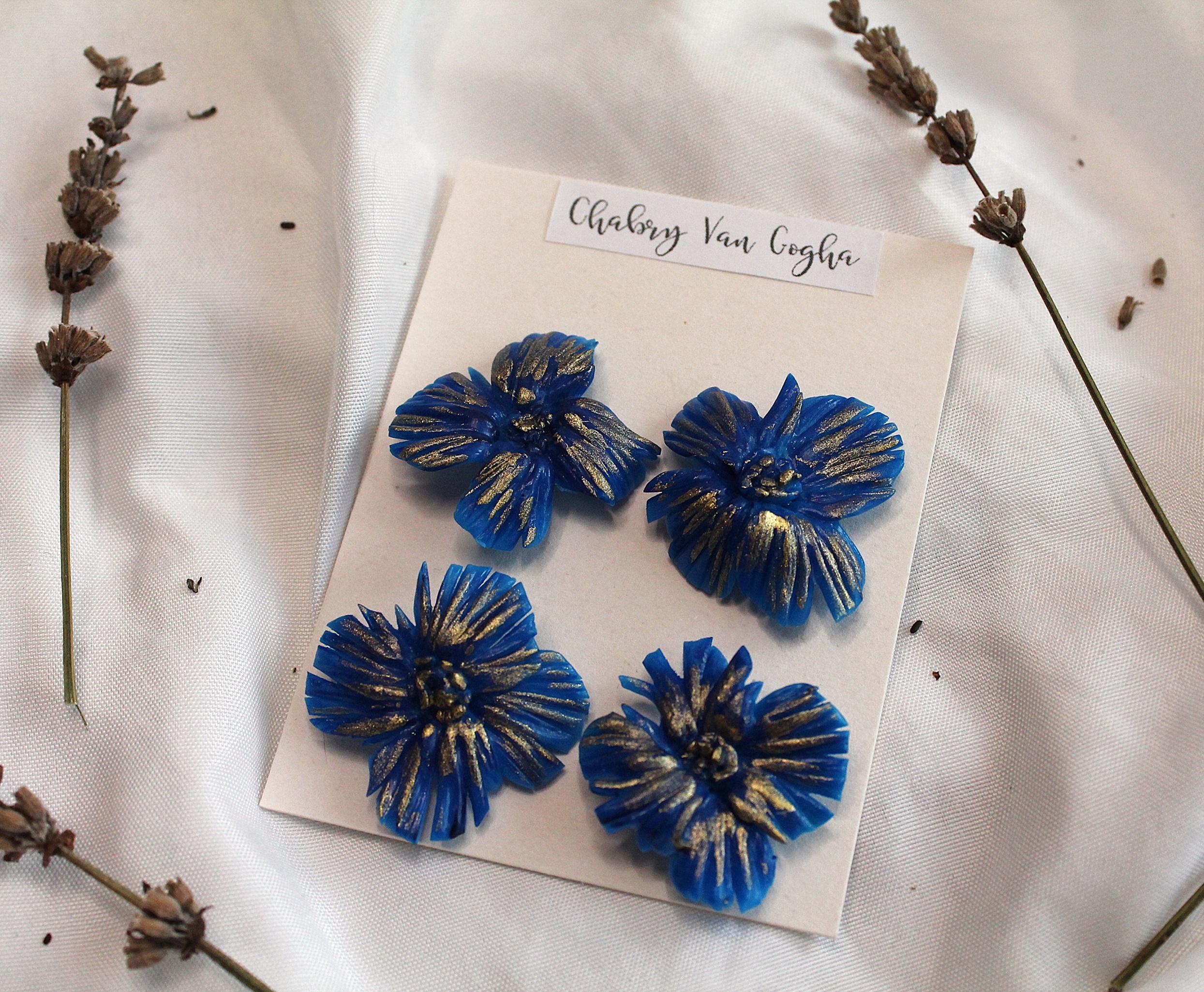 Cornflower • Pink Blossom • Botanical Leaves • Hand-Sculpted